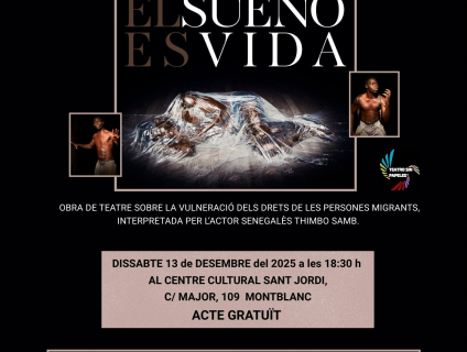 L’acte començarà a les 18:30 h al Centre Cultural Sant Jordi de Montblanc (antiga Acció Catòlica) amb la representació de l’obra «El sueño es vida», del col·lectiu madrileny Teatro sin papeles, escrita i dirigida per Moisés Mato.