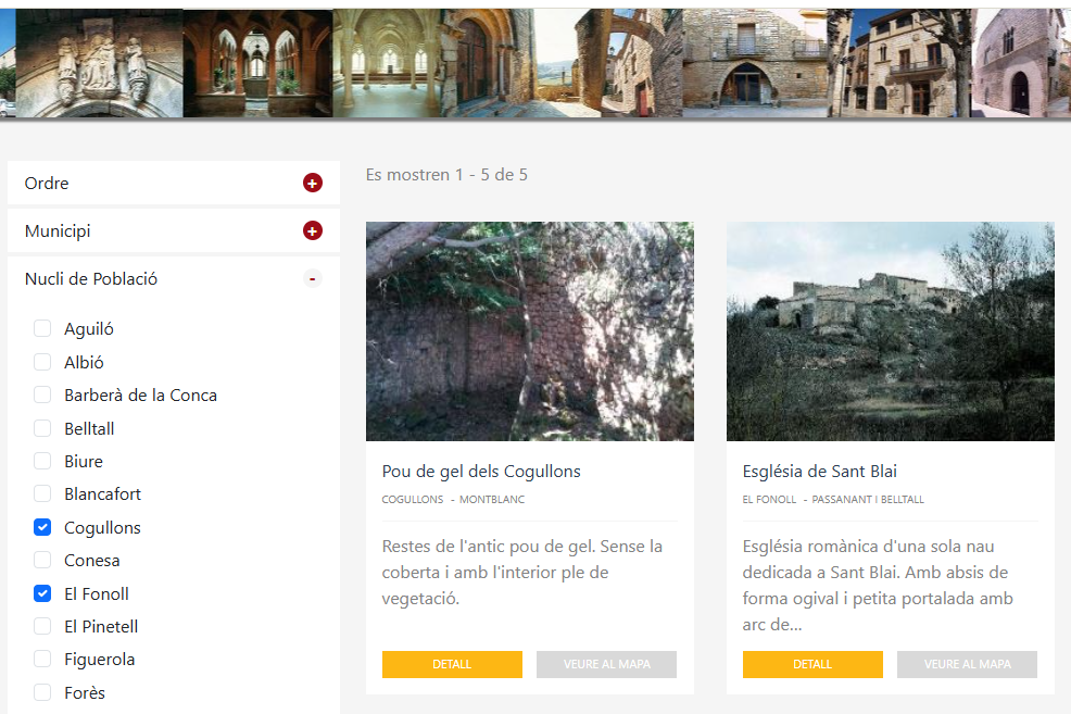 Fins ara, el cercador del web permetia filtrar per municipis (com Montblanc, L’Espluga de Francolí, Barberà de la Conca, Vimbodí i Poblet, entre d’altres). Amb la nova funcionalitat, l’usuari pot seleccionar directament el nucli de població, cosa que millora l’accés a elements ubicats en petits agregats, barris, pedanies o nuclis històrics menors. Això permet una consulta molt més precisa del patrimoni i dona major visibilitat a zones rurals i nuclis petits que formen part de la identitat arquitectònica de la Conca.