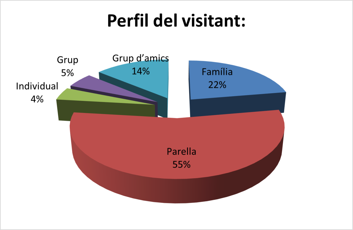 Tipologia de visitants. El 55% dels visitants de l'Oficina de Turisme han estat parelles; el 22% han estat famílies amb infants; el 4% han visitat la comarca de manera individual; el 14%, grups d’amics; i un 5% han estat grups organitzats.