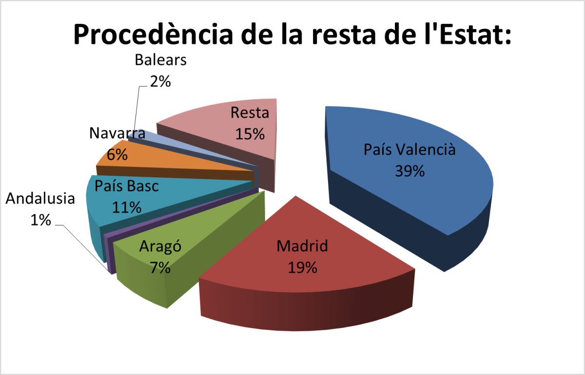 Segueixen els visitants espanyols (31%, 16.733 persones), on les principals destinacions d’origen són: País Valencià (39%), Madrid (19%), País Basc (11%), Aragó (7%), Navarra (6%) i Balears (2%) entre d’altres.
