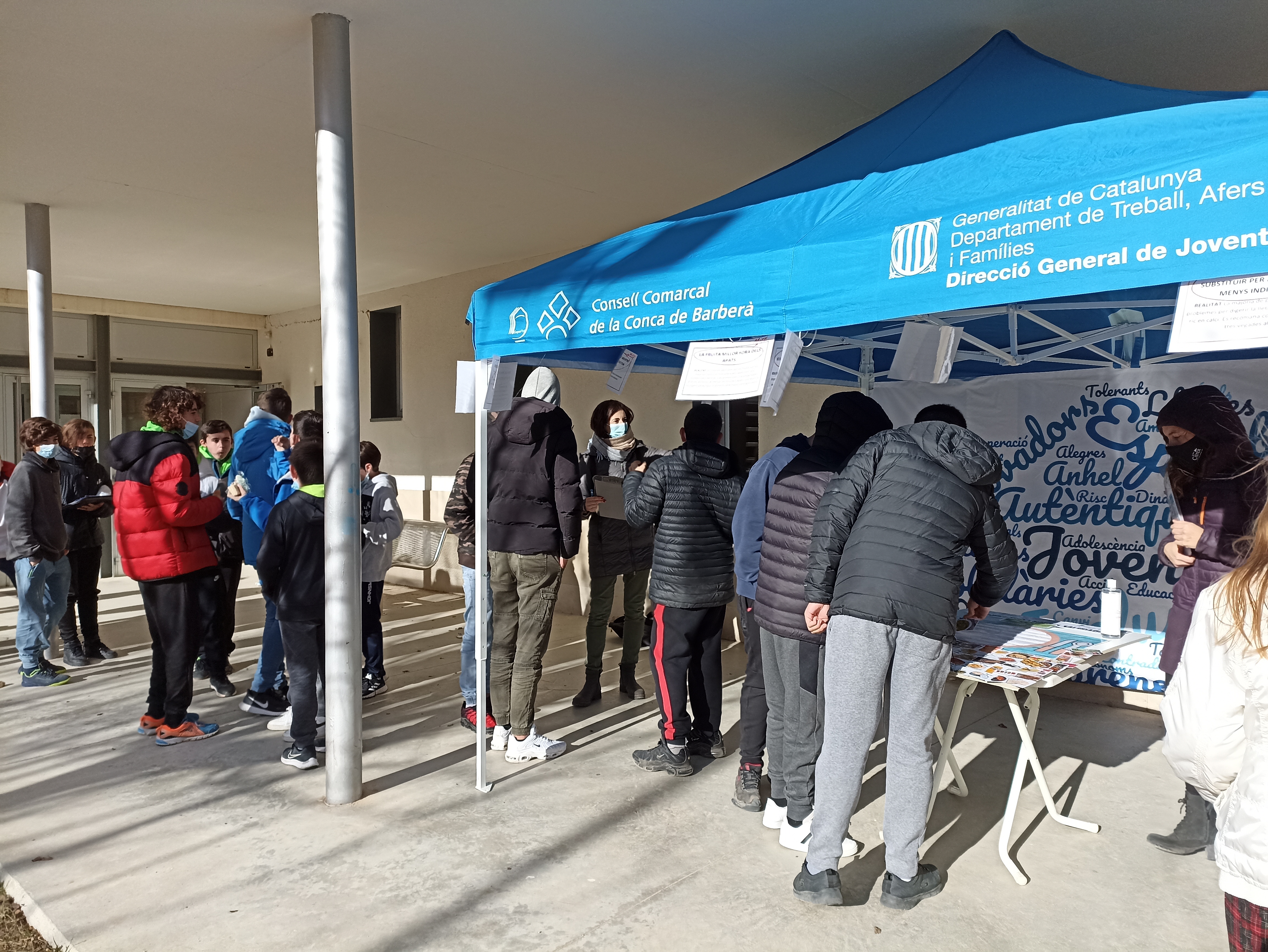 La Carpa al pati és un projecte que consisteix en la creació d'un espai participatiu, informatiu i sensibilitzador als centres d'educació secundària i Batxillerat de la Conca de Barberà. Aquest espai informal i itinerant se situa al pati dels instituts una vegada al mes i, en cada ocasió, tracta una temàtica de manera monogràfica. Els alumnes, durant la seva hora del pati es poden acostar a la Carpa i participar de les propostes que planteja l'Oficina Jove.